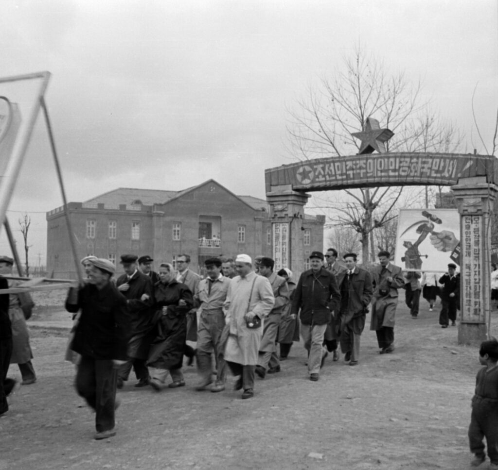 A group of Hungarian doctors at the 1 May parade in Sariwon, North Korea in 1956 PHOTO: Ákos Lőrinczi/Fortepan
