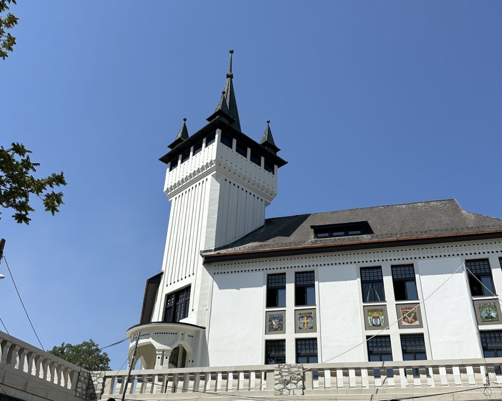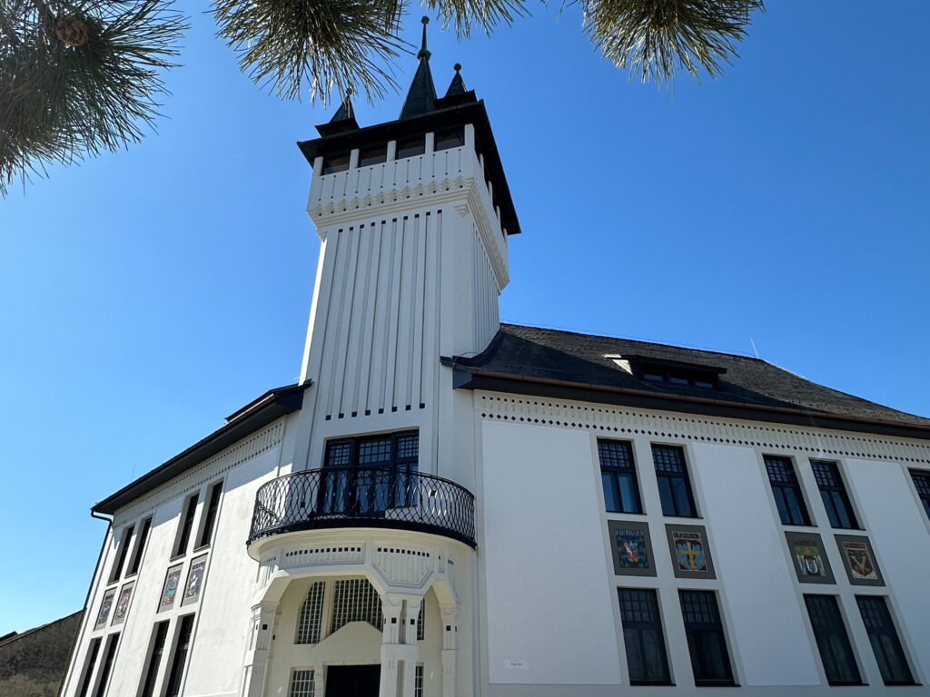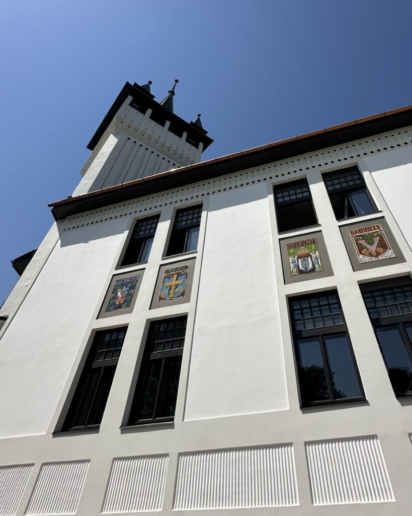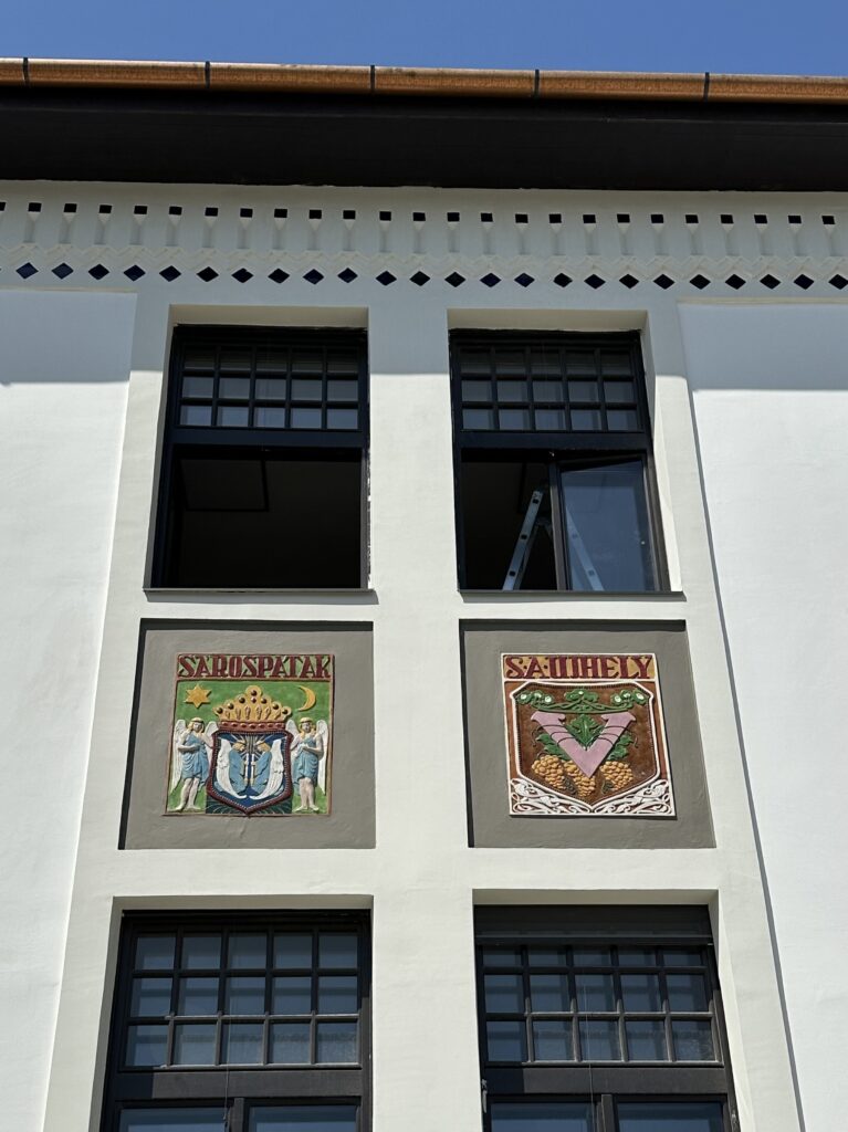 The building itself is rich in meaning: Zsolnay ceramic mosaics adorn the facade, bearing the coats of arms of the Tokaj–Hegyalja wine towns as proud symbols of the region’s identity.