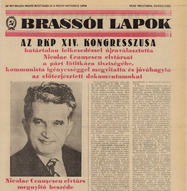 On the other hand, Brassói Lapok was the weekly newspaper of the local Hungarian minority, who lived in nearby villages or in the city. The Hungarian minority in the city and in the county as a whole was around 10 per cent—a relatively small community compared to the dominant Romanian majority. Nonetheless, even if we consider this minority as a semi-clandestine subculture within Brașov, one of their main cultural products—Brassói Lapok—closely mirrored and reproduced the ideological patterns imposed by the regime’s totalitarian institutions.