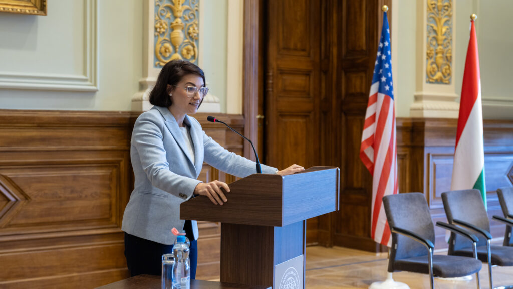 Boglárka Illés, State Secretary for Bilateral Relations at the Ministry of Foreign Affairs and Trade of Hungary, spoke next. She told the audience the United States ‘has become synonymous with freedom, opportunity, and choice’ in Hungary, and that the two nations have ‘a shared commitment to independence, freedom, and equality of nations’. She also highlighted the fact that 120 American companies have made investments in Hungary in the last few years.