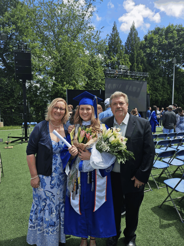 May 2024, Lili Szobácsi’s graduation with her parents PHOTO: courtesy of Judit Mayer