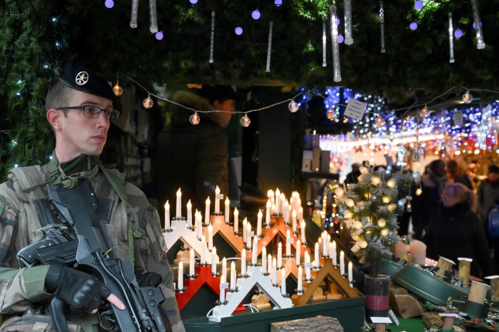 A French military patrols during the reopening of the Christmas market of Strasbourg on 14 December 2018. PHOTO: Sebastien Bozon/AFP